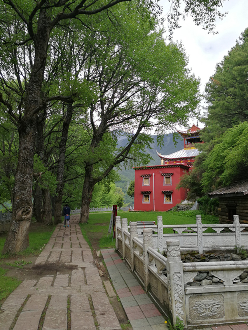 中國(guó)民俗有“大年初一不竄門(mén)”,這一天,康定人很多都會(huì)去寺廟燒香敬佛。前年大年初一,我便去了觀音閣。進(jìn)門(mén)處,有專供燒紙錢(qián)的地方。再上階梯,有長(zhǎng)列的白色佛塔,進(jìn)寺就可點(diǎn)燈朝拜。出了觀音閣,我順道去找獅子巖。公路一側(cè)的堡坎已將原來(lái)的小徑斬?cái)?,翻上堡坎,小徑幾乎已沒(méi)了蹤跡。再仰頭望,獅子巖已是掩映在濃密的綠樹(shù)雜叢間。長(zhǎng)在右側(cè)的花椒樹(shù),已不見(jiàn)蹤影。幾株高大的白楊樹(shù)遮天蔽日,最大的都長(zhǎng)到盆口粗了?!鞍倌陿?shù)木”,這無(wú)疑還是當(dāng)年那幾棵白楊樹(shù)了。我艱難地鉆過(guò)荒叢爬到獅子巖腳下,那“祭祀臺(tái)”上如過(guò)去一樣擺放有貢品,旁邊和樹(shù)枝上掛有經(jīng)幡,但周?chē)詻](méi)有一絲煙熏火燎過(guò)的痕跡。