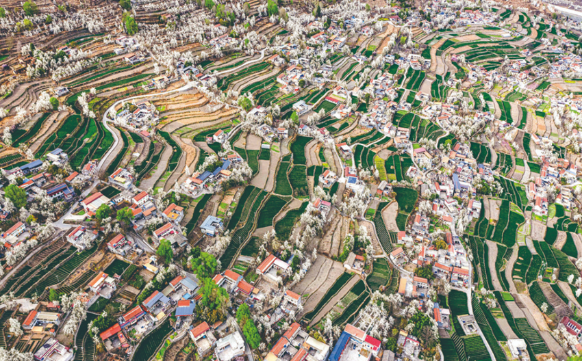 仙姿白雪帔青霞,月淡春濃意不邪。春分前后,云上新江南阿壩州金川縣,春和景明、花團(tuán)錦簇,春光無限好。大金川河水清澈明凈,蜿蜒流淌,河兩岸山間田野,千山萬壑,高低起伏、錯落有致,成片的梨花競相綻放,一枝枝、一團(tuán)團(tuán)、一簇簇,嬌艷欲滴,空氣中彌漫著梨花的芳香,恣意綻放的梨花,引來各地游客賞花踏青、漢服拍照、親子游玩;天空湛藍(lán),碧空如洗,潔白如雪的梨花,綠油油的麥苗,獨特的藏式建筑,讓金川縣有了“云上新江南·醉美梨花源”的美譽,“雪梨花景觀”“紅葉景觀”被農(nóng)業(yè)農(nóng)村部評為“中國美麗田園”景觀,成為全國唯一獲得兩項桂冠的“中國美麗田園”目的地。3月底,四川省報紙副刊研究會“行阿壩·城鄉(xiāng)融合看金川”大型新聞采訪團(tuán)走進(jìn)金川,一幅路上山、田成格、渠成網(wǎng)、花成海的世外梨源美麗畫卷盡現(xiàn)眼前。