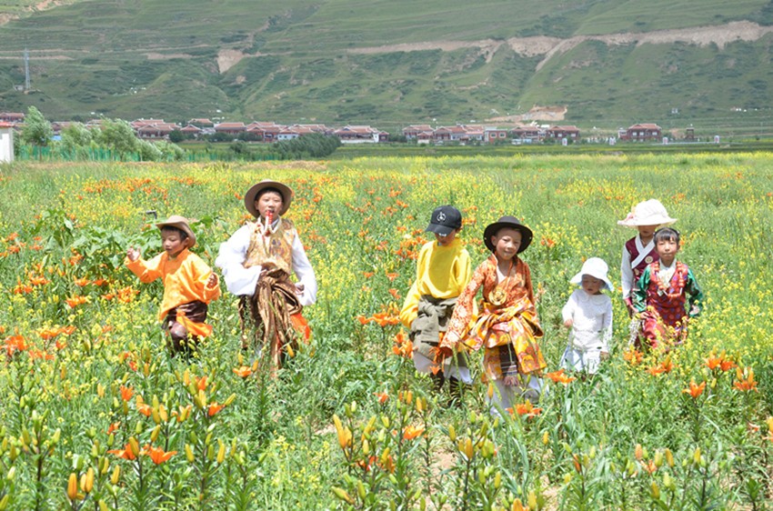 從康巴漢子村到郭崗頂,僅需半小時。極目群山,錯落有致、狀似蓮花瓣的八座山峰向你頷首致意,在郁郁蔥蔥的森林之間驀然有一塊綠蔭草甸,遠遠望去恰似中國行政區(qū)劃圖,而星星點點的牦牛猶如地圖上明顯的標示物,讓人嘆為觀止。郭崗頂曾經(jīng)是茶馬古道,其因遍地盛開一種叫郭崗花的藏紅花而被命名。眾多的文人墨客在此留下千古絕唱,使得郭崗頂充滿了童話般的色彩。置身在鮮花爛漫的花海中,俯瞰康巴漢子村的富庶寧靜,讓人感到心曠神怡。郭崗頂有兩個湖泊,叫尼瑪達瓦措,就是日月湖的意思,被稱為是郭崗頂?shù)难劬?。如果是在月朗星稀之夜,日月湖湖中有月,蔚景致迷人,讓人稱奇。當漫山遍野的郭崗花盛開的時候,郭崗蓮花寶頂象傳說中的長壽老人唱著古老的山歌、臉上綻開慈祥的笑容,用寬厚的手掌迎接著遠道而來的客人們,那些常年被郭崗花簇擁著的古建筑遺址,那些被殘垣斷壁合圍的千年古柏訴說著古老的歷史,不管是風光秀麗的郭崗頂,還是雄姿英發(fā)的康巴漢子,這里都是你心馳神往的地方。