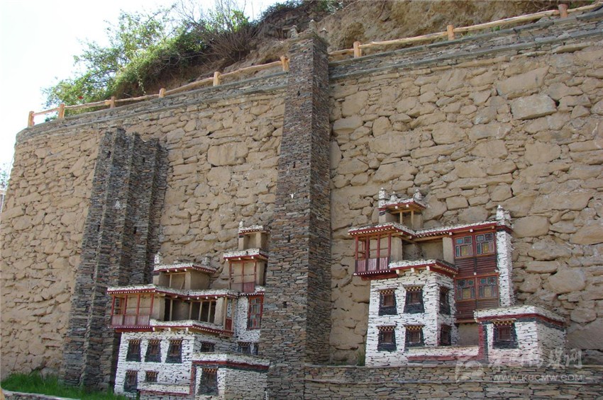 宋達(dá)村活動場所是一個寬約二十米,長約三十米的大壩,里面是高約十米的石砌圍墻,此時幾個工人正在忙碌著,幾座建筑模型已初見成形,最左邊是一座十三角碉的模型,一名工人坐在碉樓的樓頂上拿著手錘正奮力的敲打著眼前的石片,那石雕一半露在墻外,還有一半巧妙的鑲嵌在圍墻里。筆者走上前去,來到“碉樓”下,整座碉樓都是用灰色的石片砌成,每個石片間距一致,幾乎不見一點(diǎn)縫隙,充分展示了嘉絨人民高超的石砌技藝。十三角碉,顧名思義,就是整座碉樓由十三個角組成,在古時候是展示財(cái)富和地位的一種表現(xiàn)形式,砌墻的師傅非常健談,他告訴我,在嘉絨地區(qū),碉樓又以十三角碉最為罕見,據(jù)說,如今殘存的十三角碉全世界都只有三座,而其中保護(hù)得最為完整的尤數(shù)梭坡鄉(xiāng)普格頂村了,他頓了頓,伸出布滿青筋沾滿灰塵的手,往上指了指,自豪的說,它就在我們宋達(dá)村的山巔上,我不禁肅然起敬,為家鄉(xiāng)擁有這樣一座凝聚著嘉絨人民智慧結(jié)晶的古碉而激動不已。在十三角碉旁,是一座典型的嘉絨藏房模型,共有五層,第一層為關(guān)牛羊的畜圈,石砌匠人巧妙的將一樓門洞和排水口合二為一,即增加了美感,也增加了科學(xué)性。第二層樓房有兩扇窗戶,是人們飲食起居的重要場所。第三層樓房上有三扇窗戶,是儲藏糧食、臘肉的地方。每一扇窗按照比例縮小制成,當(dāng)筆者問匠人為什么嘉絨藏房的門窗都如此矮小時,他對此也娓娓道來。他告訴我,古時候嘉絨大地上混沌莫開、妖魔橫行,人們每天都在膽戰(zhàn)心驚中度過,那時候的房屋窗戶、門都修得異常的高大,夜幕降臨時,這些妖魔就從窗戶、門洞里爬進(jìn)來,將熟睡的人擄走,后來嘉絨女王要求屬民們將窗戶和門洞改小,后來人們一直將此修建之法一直延續(xù)至今。第四層上是用木板、木頭作成的回廊,紅白相間,煞是美觀。第五層是堆放雜物的場所,石墻的每個角上都有石砌的尖角,如牛角一樣直指蒼穹,在尖角之間,有煨桑祈福的佛塔。再往右邊是一座四角碉的模型,由于只有四角,因此在修建中速度比十三角碉快了許多,那棱角愈發(fā)的鋒利。在嘉絨藏區(qū),這種碉樓是最常見的碉樓之一,碉樓藏語中稱為“邛籠”。早在2000年前《后漢書'西南夷傳》就有羌族人“依山居止,壘石為屋,高者至十余丈”的記載。碉樓多建于村寨住房旁,高度在10至30米之間,用以御敵和貯存糧食柴草。碉樓有四角、六角、八角幾形式。碉樓一般建于沿河谷高山或半坡有耕地和水源的地方,結(jié)合地形,利用有限的平臺,利用石頭筑成平頂。一般分成二層或三層,上層堆放糧食,中層住人,下層圈養(yǎng)牲畜,高二三丈,稱為邛籠;高的可有十三層,達(dá)十余丈,稱為碉。碉樓由專門的砌石匠修建,原料為亂石,用泥土粘合,不吊線,不繪圖,全憑經(jīng)驗(yàn),信手砌成。其壁面能達(dá)到光滑平整,不留縫隙,其堅(jiān)固程度則可在川西這個地震多發(fā)區(qū)聳立數(shù)十年甚至數(shù)百年,經(jīng)歷數(shù)次地震仍然巍然屹立,有的已偏倚卻不倒,有的彎曲為弓,自成風(fēng)景。它按照功能分為戰(zhàn)碉、家碉、寨碉等。再往右邊走,是一座低矮的樓房,它也是嘉絨藏區(qū)最為常見的藏房之一,雖然低矮,然而其中的雕樓畫棟美不勝收。據(jù)縣農(nóng)辦負(fù)責(zé)人介紹,宋達(dá)村地處普格頂山腳下,省道線從門前經(jīng)過,山頂山有著為名遐邇的十三角碉,民風(fēng)純樸,因此該村要突出物質(zhì)文化引領(lǐng)經(jīng)濟(jì)建設(shè)的發(fā)展,為此打造碉樓文化及藏族民居文化,吸引大批游客走進(jìn)村莊里,鼓勵村民自己建造有著嘉絨風(fēng)味的藏族民居,實(shí)現(xiàn)生產(chǎn)發(fā)展,這是新農(nóng)村建設(shè)的中心環(huán)節(jié),是實(shí)現(xiàn)其他目標(biāo)的物質(zhì)基礎(chǔ),也是我們打造宋達(dá)村新農(nóng)村建設(shè)所思考的問題,我們也逐步在實(shí)現(xiàn)這目標(biāo)。