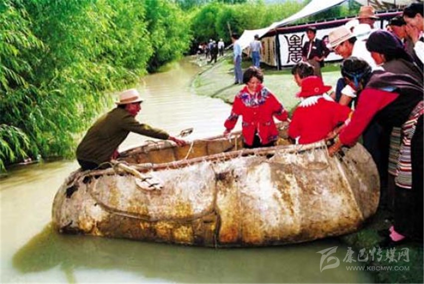 近代牛皮船側面看是梯形的,下大上小,用4張牛皮縫制,船底面積比早期船大一倍,一只船一次約載七八個人。牛皮船可靈活組合,如果乘客人數(shù)較多又不愿分開過江河,也可把幾只牛皮船捆綁在一起,這樣人和東西就可以一起過江了。當然,這時候船夫也需要添幾個幫手。一個牛皮船只有數(shù)十斤重,一個人背著還可以走遠路。不用時則支在駐地附近晾干。至今在雅魯藏布江和拉薩河上還能見到牛皮船的影子,在偏遠的鄉(xiāng)村,只要有河,牛皮船仍然是人們渡河的工具。