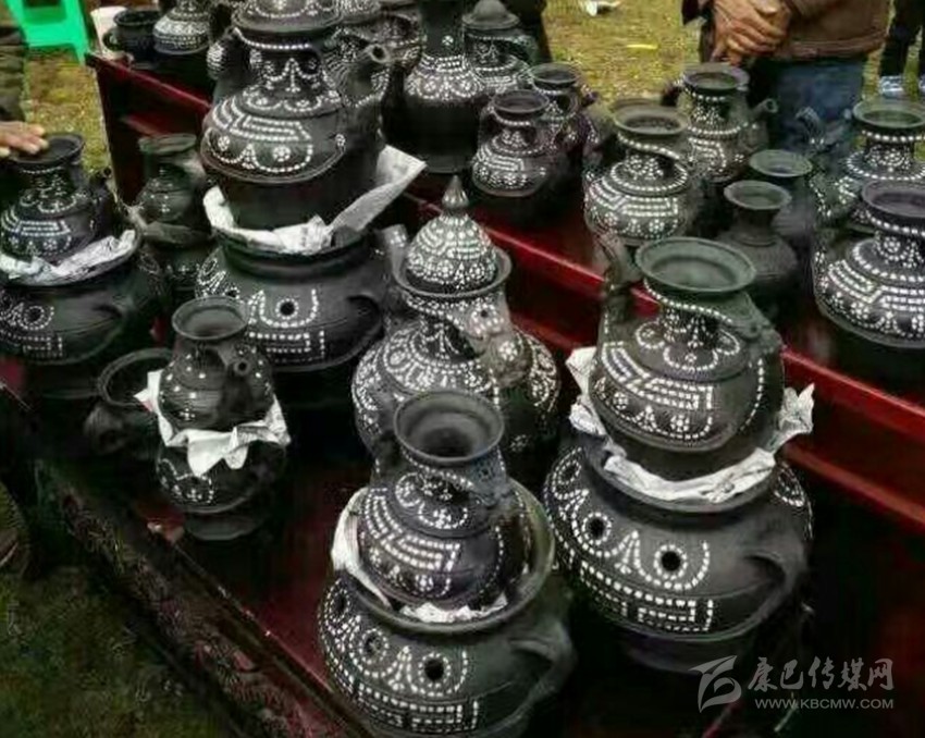 宗教佛事用陶具的制作和用途有明確規(guī)定,當(dāng)?shù)匕傩赵诿磕瓴貧v新年前夕均要制作佛事用具。以戶(hù)為單位,每戶(hù)3件,其明顯特點(diǎn)是顏色都有別于黑陶,多采用白色作陪襯。制作好的佛事陶具于藏歷新年初五送往寺廟,由寺廟高僧做法事,擇日,在太陽(yáng)出來(lái)前將陶具置于河中深水處,祈禱來(lái)年風(fēng)調(diào)雨順、人們幸福安康。