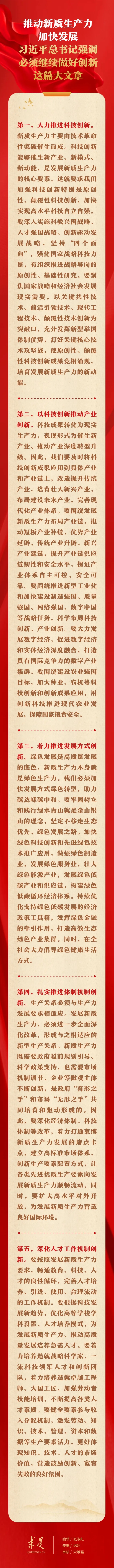 6月1日出版的第11期《求是》雜志刊發(fā)習近平總書記重要文章《發(fā)展新質生產(chǎn)力是推動高質量發(fā)展的內在要求和重要著力點》。在這篇重要文章中,習近平總書記從科技創(chuàng)新、產(chǎn)業(yè)創(chuàng)新、發(fā)展方式創(chuàng)新、體制機制創(chuàng)新、人才工作機制創(chuàng)新等五個方面,對推動新質生產(chǎn)力加快發(fā)展提出明確要求。