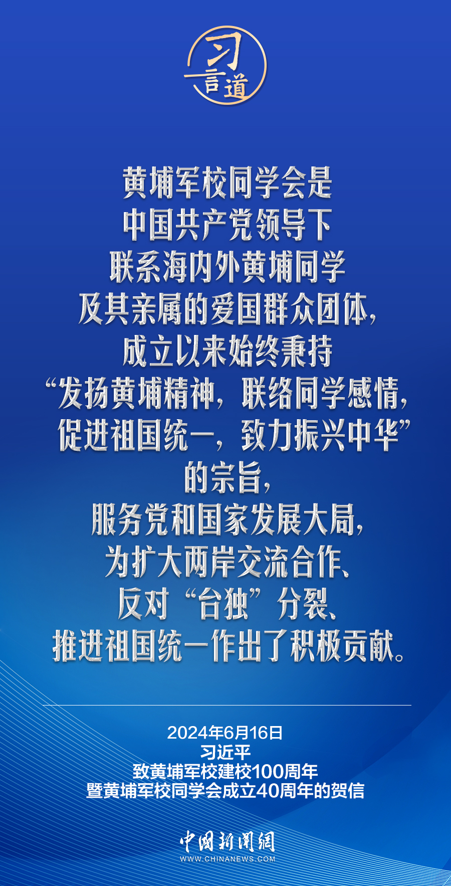 在黃埔軍校建校100周年暨黃埔軍校同學會成立40周年之際,中共中央總書記、國家主席、中央軍委主席習近平發(fā)來賀信,代表中共中央向黃埔軍校同學會表示熱烈祝賀,向廣大海內外黃埔同學及其親屬致以誠摯問候。習近平指出——