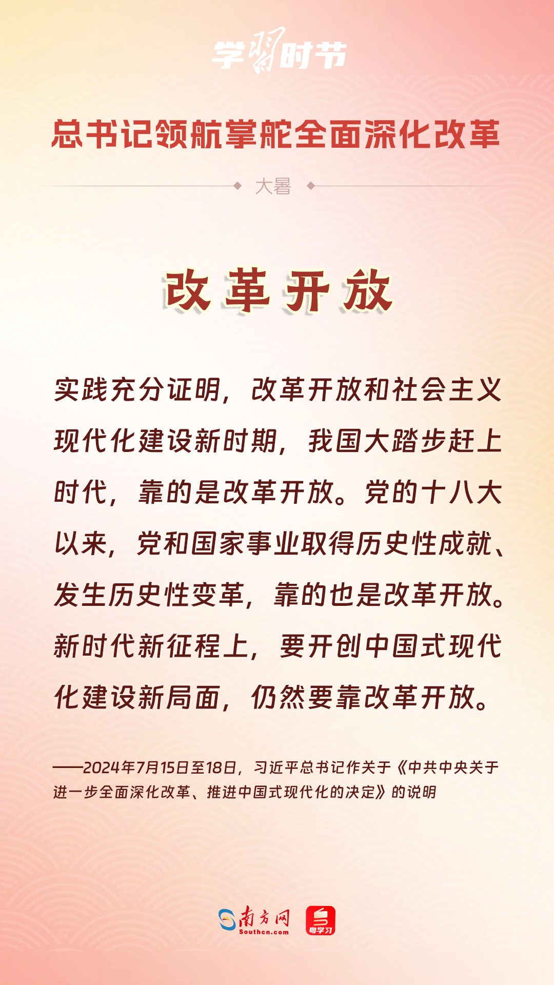 黨的十八大以來,習近平總書記親自領(lǐng)導、親自部署、親自推動全面深化改革工作,推動全面深化改革事業(yè)在攻堅克難中不斷邁上新臺階、取得新勝利。在驕陽似火的大暑時節(jié),通過一組海報,讓我們共同學習習近平總書記關(guān)于“全面深化改革”的重要論述。