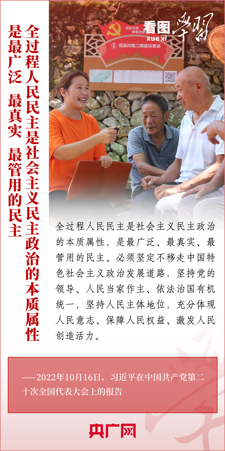 圍繞黨的二十屆三中全會明確提出的“七個聚焦”改革方向,《看圖學習》“改革為人民”系列為您梳理總書記相關重要論述。本期推出“聚焦發(fā)展全過程人民民主”,一起來學習!
