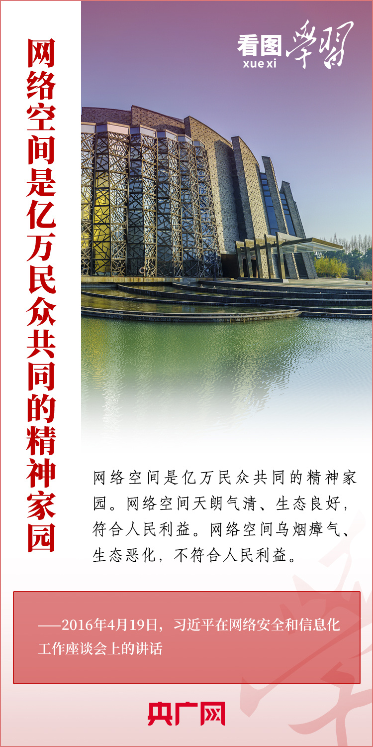 “堅持發(fā)展和治理相統(tǒng)一、網(wǎng)上和網(wǎng)下相融合,廣泛匯聚向上向善力量”“共建網(wǎng)上美好精神家園”。習(xí)近平總書記格外重視網(wǎng)絡(luò)空間這一億萬民眾共同精神家園的建設(shè),圍繞網(wǎng)絡(luò)文化和網(wǎng)絡(luò)強國建設(shè)作出了一系列重要深刻論述。