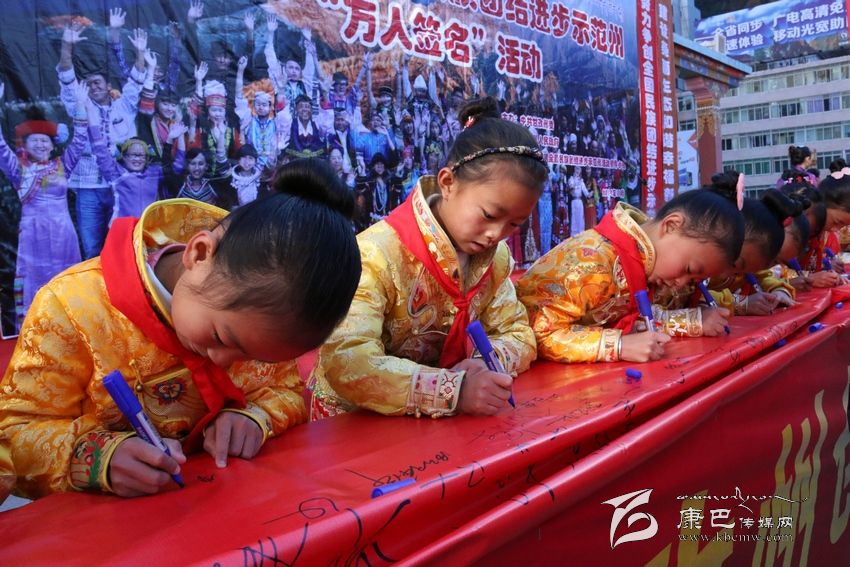 我們的家鄉(xiāng)更好更快地發(fā)展。”11月20日,在我州康定情歌廣場(chǎng)舉行創(chuàng)建全國(guó)民族團(tuán)結(jié)進(jìn)步示范州“萬(wàn)人簽名”活動(dòng)現(xiàn)場(chǎng),來(lái)自省藏校的學(xué)生代表李康珠這樣說(shuō)道。