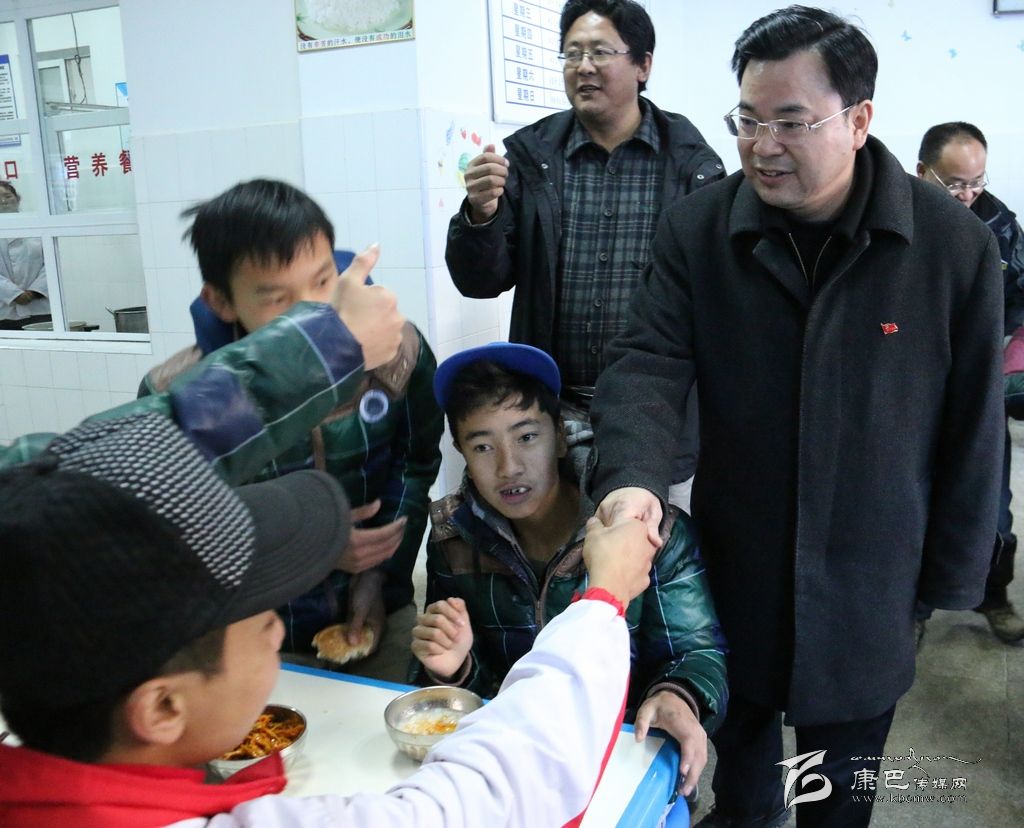 來到州特殊教育學(xué)校,學(xué)校校長澤仁郎吉告訴胡昌升,“地震來臨時(shí),學(xué)校教師按照過去的地震應(yīng)急演練,組織全校80多名學(xué)生有序撤離,無一人受傷。地震發(fā)生后,家長到學(xué)??吹胶⒆佣己馨踩?,非常放心”。胡昌升對該校在關(guān)鍵時(shí)刻及時(shí)有序疏散學(xué)生的做法給予了充分肯定。走進(jìn)學(xué)校食堂,全校學(xué)生正在吃早飯,見到胡昌升一行,所有孩子都伸出手指,用手語向大家表示感謝。胡昌升對周圍的州教育局負(fù)責(zé)同志和學(xué)校老師說,學(xué)校要嚴(yán)密防控余震帶來的次生災(zāi)害,確保大家安全。