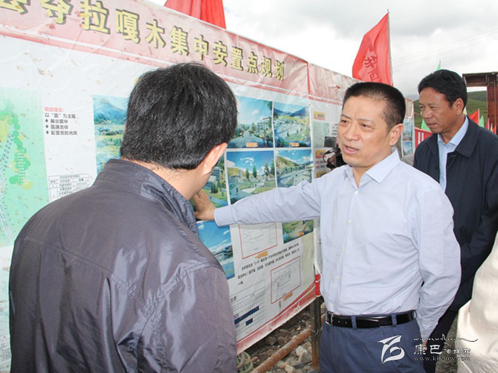 劉成鳴在康定市奪拉嘎姆集中安置點調(diào)研指導(dǎo)。
