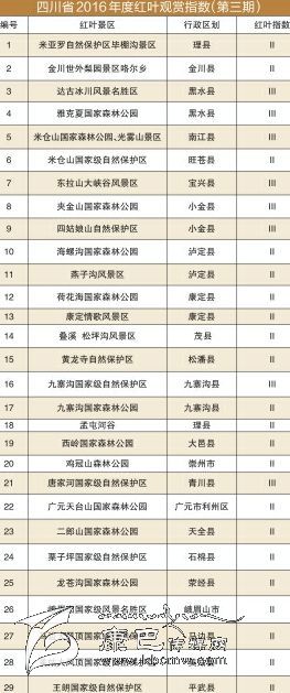 10月26日,四川省林業(yè)廳發(fā)布第三期紅葉觀(guān)賞指數(shù),在29個(gè)點(diǎn)位中,8個(gè)景點(diǎn)達(dá)到III級(jí)紅葉觀(guān)賞指數(shù)。其余點(diǎn)位也都達(dá)到2級(jí)以上。這意味著,四川所有紅葉觀(guān)測(cè)點(diǎn),葉片變色率都超過(guò)了35%,四川迎來(lái)2016年最佳紅葉觀(guān)賞期。