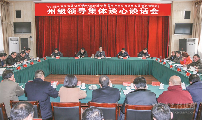 本網(wǎng)訊 (記者 楊杰 文/圖)1月12日上午,州委書記劉成鳴主持召開州級領(lǐng)導(dǎo)集體談心談話會(huì),與州委、州人大常委會(huì)、州政府、州政協(xié)班子成員集體懇談交流、溝通思想。他強(qiáng)調(diào),州級領(lǐng)導(dǎo)要進(jìn)一步統(tǒng)一思想,拼盡全力,擰成一股繩,匯聚一股氣,打好甘孜州的“翻身仗”,團(tuán)結(jié)帶領(lǐng)全州各族干部群眾,齊心協(xié)力完成州第十一次黨代會(huì)確定的目標(biāo)任務(wù),確保到2020年與全國、全省同步全面建成小康社會(huì)。