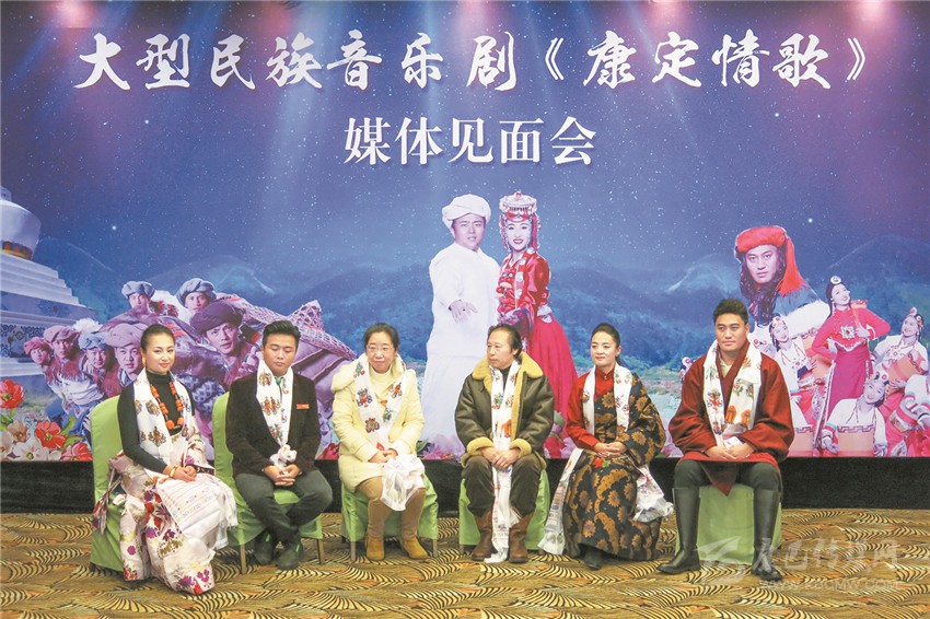 1月15日,大型民族音樂(lè)劇《康定情歌》媒體見(jiàn)面會(huì)在成都沙灣會(huì)展中心舉行。該劇總導(dǎo)演關(guān)大心,編劇張勇,藝術(shù)總監(jiān)益呷率主演四郎貢布、戴宛蕓、赤勒旦真等主創(chuàng)人員及部分演員整齊亮相。省文化廳劇目工作室主任、國(guó)家一級(jí)編劇丁鳴、州委宣傳部、州精神文明辦和州民族歌舞團(tuán)相關(guān)負(fù)責(zé)人參加此次媒體見(jiàn)面會(huì)。