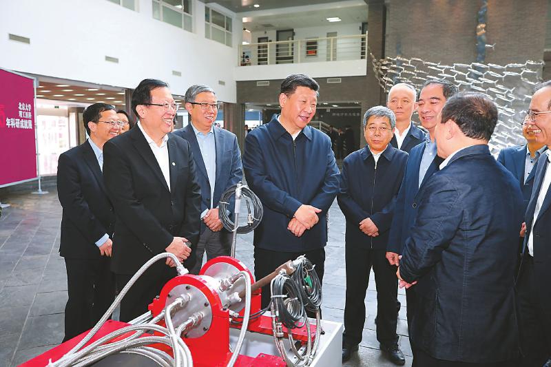 近年來,北京大學(xué)培養(yǎng)和匯聚了一批具有世界領(lǐng)先水平的科學(xué)家、科技領(lǐng)軍人才和創(chuàng)新團隊,科研綜合實力、原始創(chuàng)新能力顯著增強。在金光生命科學(xué)大樓一層大廳,展示了近年來北京大學(xué)在理科、工科、醫(yī)科等領(lǐng)域的科研成果。習(xí)近平認真聽取關(guān)于學(xué)校學(xué)科建設(shè)、人才隊伍建設(shè)、科研創(chuàng)新能力提升等情況介紹,并仔細察看新一代干細胞技術(shù)、碳芯片技術(shù)、微型雙光子顯微成像系統(tǒng)等科研裝置和實物模型。習(xí)近平對大家說,看了你們的成果展示,我為你們感到驕傲。創(chuàng)新是引領(lǐng)發(fā)展的第一動力,是國家綜合國力和核心競爭力的最關(guān)鍵因素。重大科技創(chuàng)新成果是國之重器、國之利器,必須牢牢掌握在自己手上,必須依靠自力更生、自主創(chuàng)新。在這個問題上,我們一定要保持清醒。要繼續(xù)深化科技體制改革,把人、財、物更多向科技創(chuàng)新一線傾斜,努力在關(guān)鍵共性技術(shù)、前沿引領(lǐng)技術(shù)、現(xiàn)代工程技術(shù)、顛覆性技術(shù)創(chuàng)新上取得更大突破,搶占科技創(chuàng)新制高點。高校是科技創(chuàng)新體系的重要組成部分,高??蒲腥藛T是我國科技創(chuàng)新的重要隊伍。要加強學(xué)科之間的協(xié)同創(chuàng)新,加強對交叉學(xué)科群和科技攻關(guān)團隊的支持,培養(yǎng)造就更多具有國際水平的科技人才和創(chuàng)新團隊。