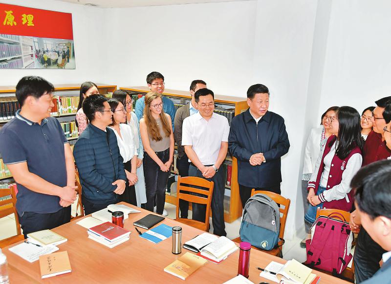 5月2日,中共中央總書記、國家主席、中央軍委主席習(xí)近平來到北京大學(xué)考察。這是習(xí)近平在北京大學(xué)馬克思主義學(xué)院,與正在就“解讀新時代”進行座談交流的中外學(xué)生親切交談。 新華社記者 李濤 攝