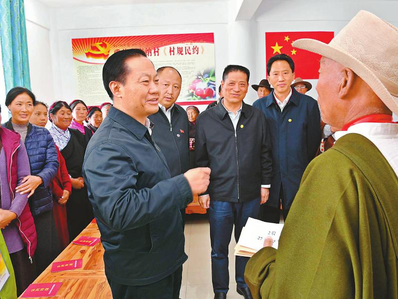 彭清華指出,要認真落實新時代黨的建設(shè)總要求,以黨的政治建設(shè)為統(tǒng)領(lǐng),全面加強黨的各項建設(shè),引導黨員干部樹牢“四個意識”、增強“四個自信”,堅定同以習近平同志為核心的黨中央保持高度一致。要全面加強各級領(lǐng)導班子和干部隊伍建設(shè),始終把政治標準放在第一位,把對黨忠誠、立場堅定、敢抓敢管的優(yōu)秀干部選出來用起來。要全面加強基層黨組織建設(shè),充分發(fā)揮戰(zhàn)斗堡壘和先鋒模范作用,夯實筑牢黨在藏區(qū)的執(zhí)政根基。
