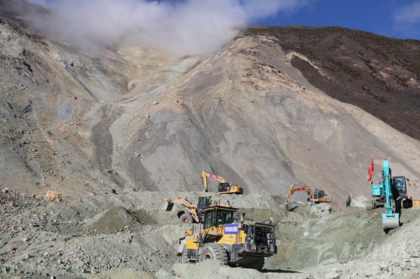 就在專家組緊急會商人工干預方案期間,從各地增援的大型機械已陸續(xù)抵達集結。11月5日下午3時左右,在下游葉巴灘水電站施工的水電五局的2臺挖掘機最先抵達白玉縣城,沒做停留又立即向則巴村方向前進。