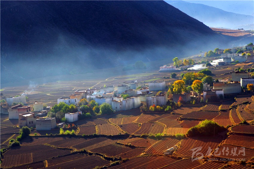 細(xì)數(shù)鄉(xiāng)城40年變遷,老人神采飛揚(yáng)。鄉(xiāng)城是一幅畫,一幅展現(xiàn)人文與自然和諧美的畫。遠(yuǎn)方群山,村樹含煙,阡陌縱橫,白色藏房錯(cuò)落有致,宛如陶淵明筆下“芳草鮮美,落英繽紛”的桃源畫境,在藍(lán)天白云之下,香巴拉鄉(xiāng)城靜謐如畫。