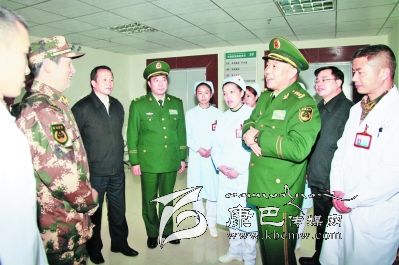 他還走進每一個科室,檢查工作,與醫(yī)務(wù)人員交談,走進病房,看望慰問正在這里接受治療的部隊官兵。