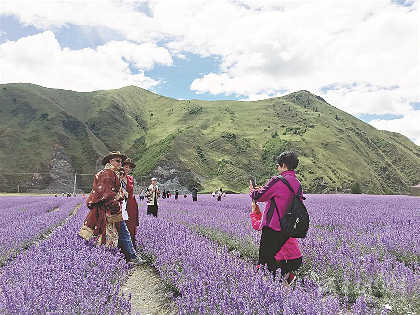 新網(wǎng)紅打卡地——新都橋薰衣草花海吸引著來自全國(guó)各地的游客。本網(wǎng)記者 游飛 劉婭靈 攝