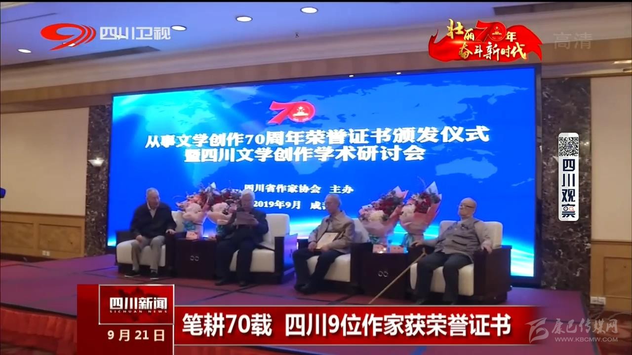 今年是新中國成立70周年,也是中國作家協(xié)會成立70周年,為表彰老一輩作家為新中國文學(xué)事業(yè)建立的功績,昨天(20日),“從事文學(xué)創(chuàng)作70年榮譽證書”頒發(fā)儀式暨四川文學(xué)創(chuàng)作學(xué)術(shù)研討會”在成都舉行,馬識途、王火、王爾碑、木斧、方赫、白航、劉令蒙、李致、流沙河9名四川作家獲頒榮譽證書。