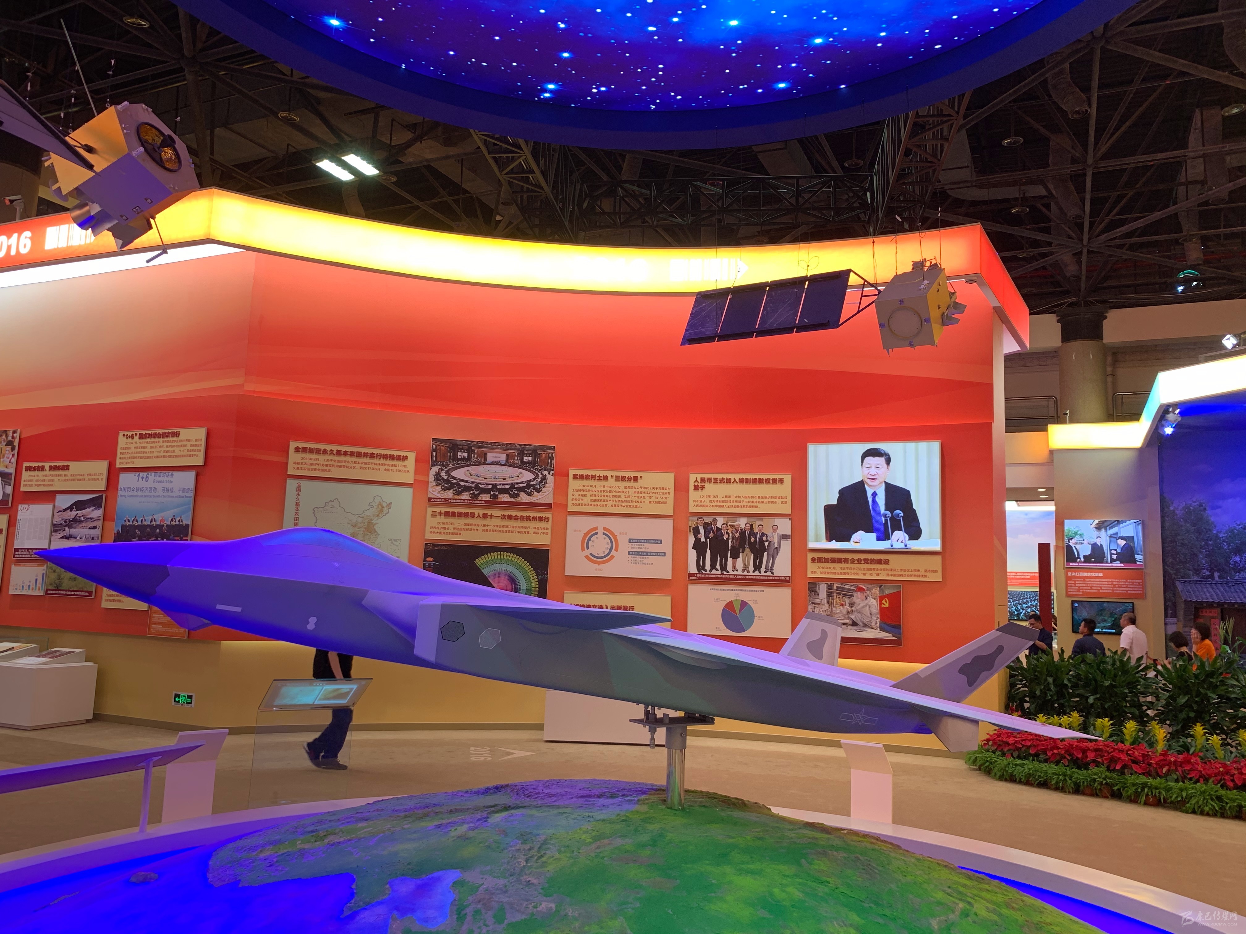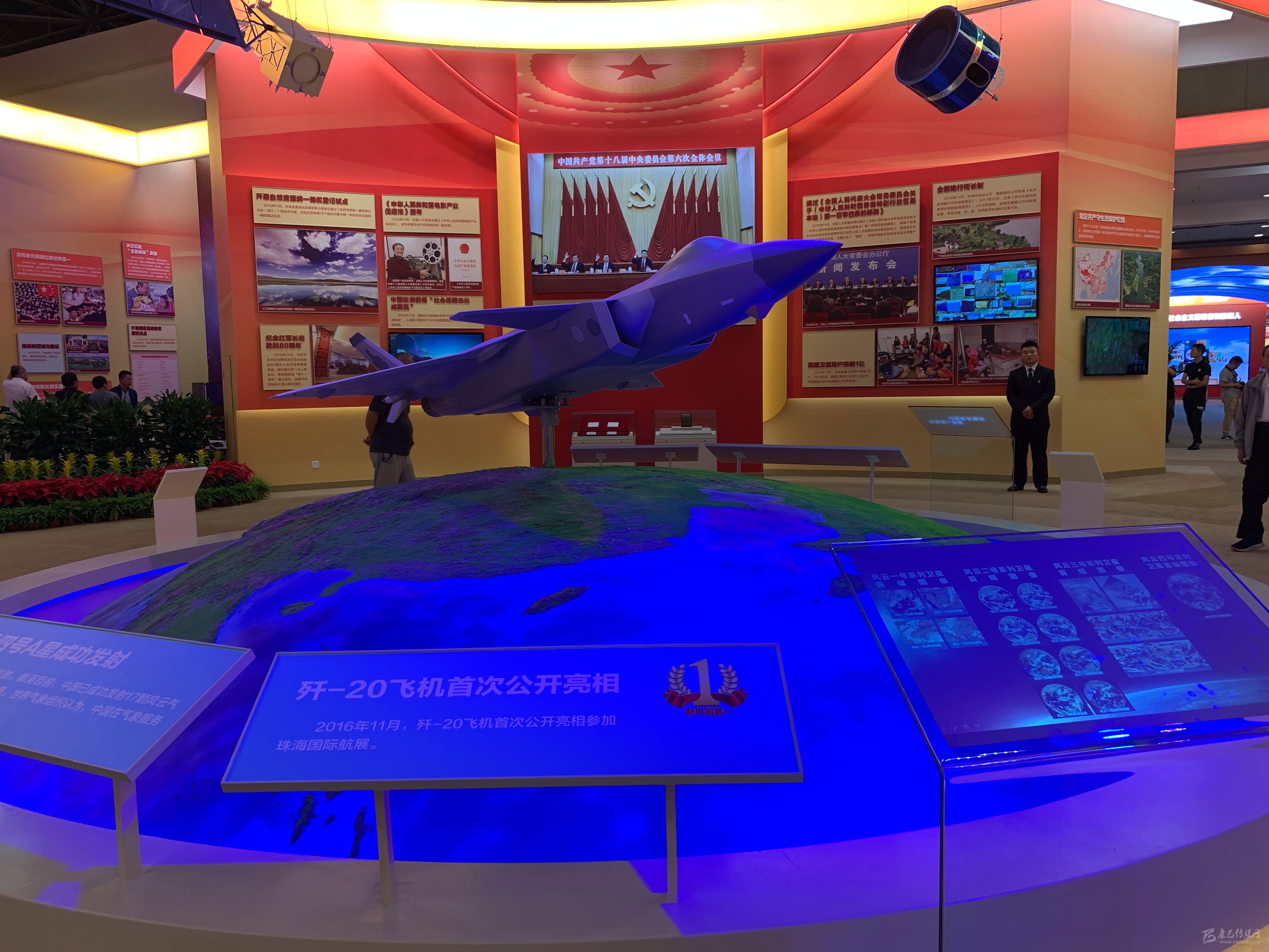 此次展覽中,殲-20戰(zhàn)斗機以獨立模型的方式展出。