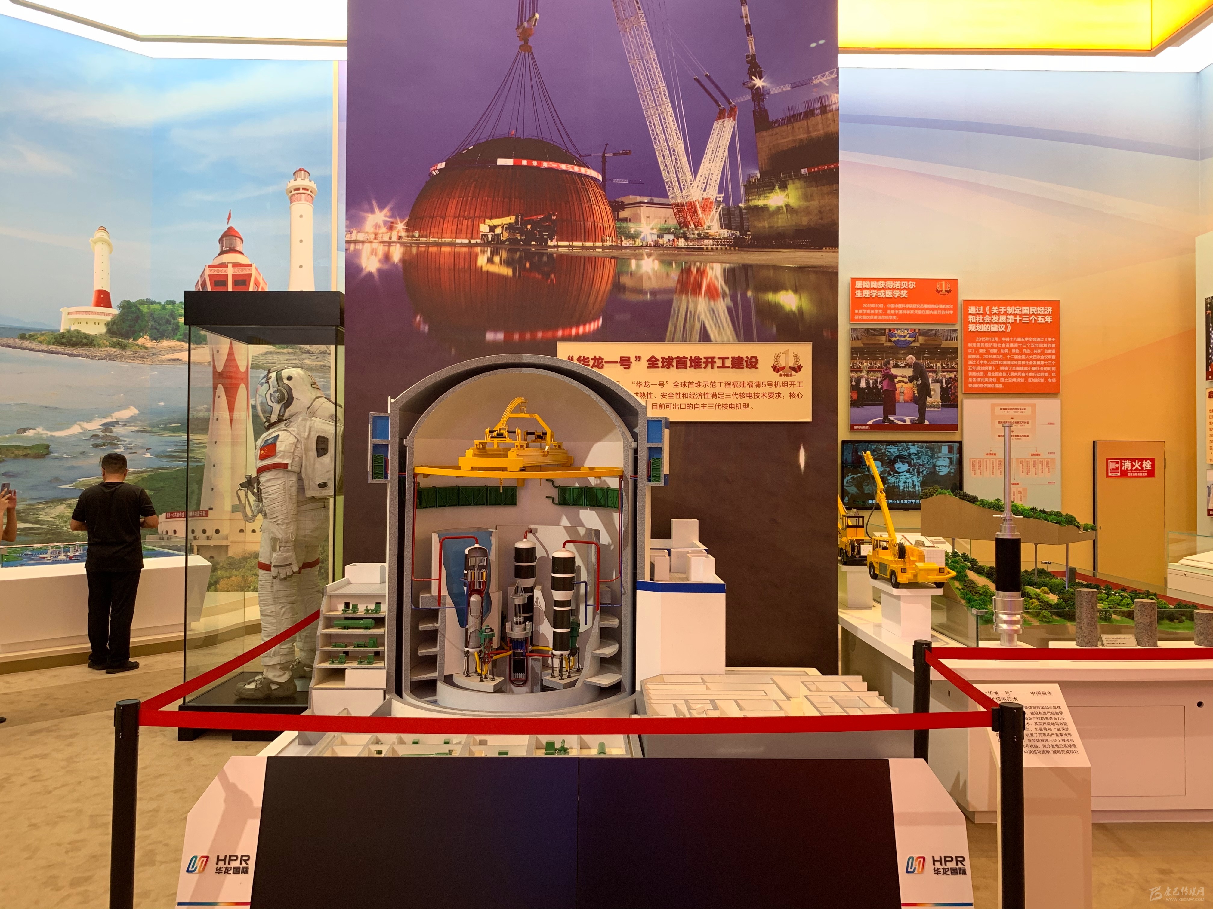 展館現(xiàn)場,縮小版的華龍一號模型吸引了很多觀眾駐足。