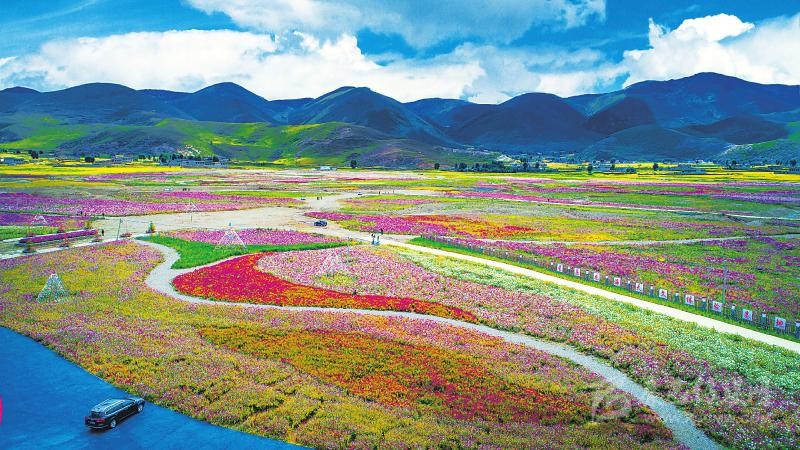 2018年9月,距甘孜州稻城縣城7公里的色拉鄉(xiāng)八美村山谷,1500余畝格桑花開成壯美“花?!薄6@里以前曾經(jīng)是沙化嚴(yán)重的低效益牧場。