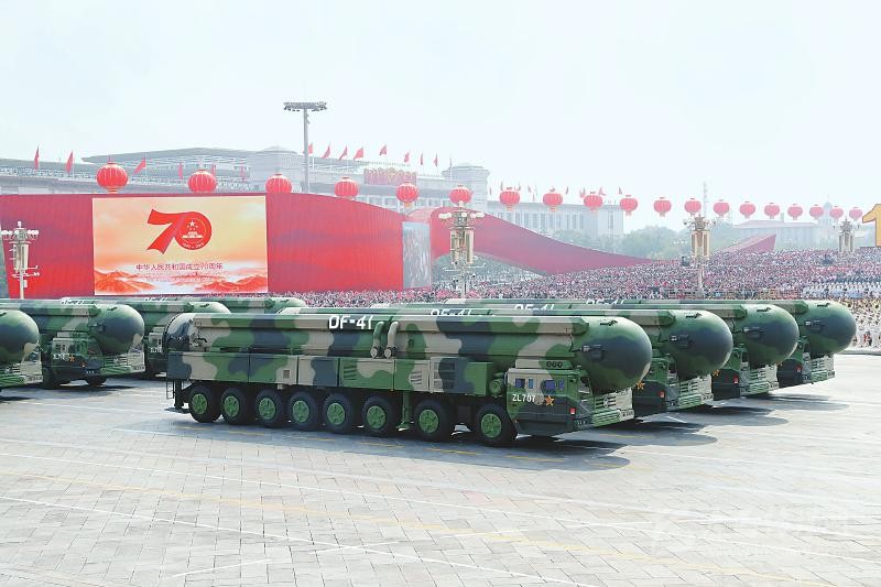 東風(fēng)-41核導(dǎo)彈方隊接受檢閱。 新華社記者王曄攝