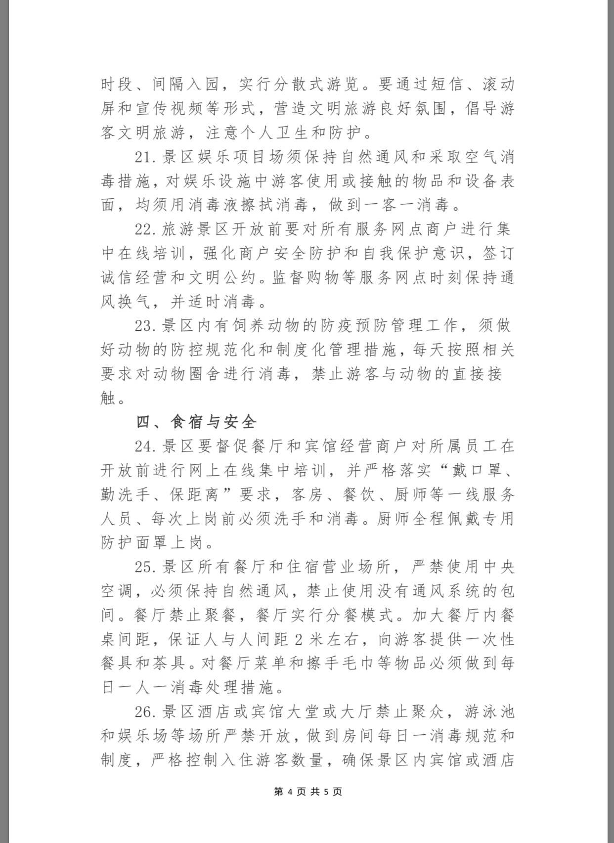 為保障景區(qū)安全有序恢復(fù)開放,景區(qū)游客服務(wù)中心和(志愿者或商業(yè))服務(wù)網(wǎng)點除放置免費中英文防治新冠肺炎的宣傳資料外,還要放置“本中心已消毒”告示,應(yīng)備有75%的酒精棉球或其它消毒液等免費供游客使用。同時,景區(qū)內(nèi)所有交通工具駕乘人員都必須佩戴防護(hù)口罩,采取隔位就坐的方式控制乘坐人數(shù),確保游客之間的有效間距,而垃圾箱(桶)則實行“一日兩清理兩消毒”制度,增設(shè)廢棄口罩回收專用箱(桶)。