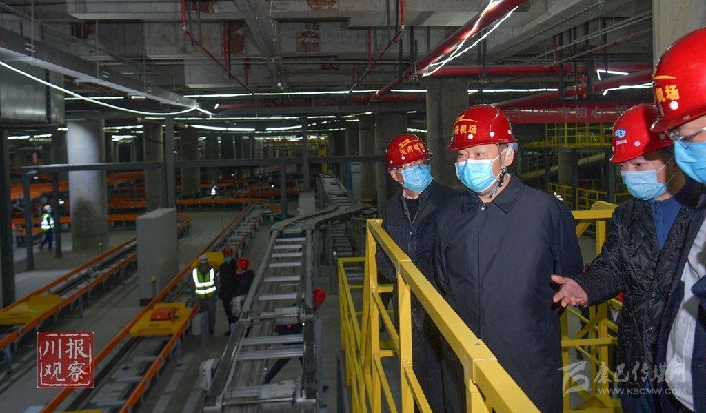 2月27日,彭清華書(shū)記到成都天府國(guó)際機(jī)場(chǎng)T1航站樓行李系統(tǒng)施工區(qū)域調(diào)研。