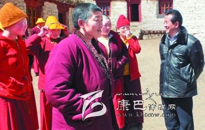 在雅江縣委、縣人大常委會主要領(lǐng)導(dǎo)及統(tǒng)戰(zhàn)、宗教部門的陪同下,李康來到距縣城90多公里的雅江縣紅龍鄉(xiāng)158k覺姆寺,同寺管會成員和部分僧尼進(jìn)行座談。他詳細(xì)了解寺廟的基本情況,仔細(xì)詢問僧尼的生產(chǎn)生活和寺廟佛事活動開展情況,認(rèn)真傾聽僧尼的反映和訴求,對僧尼提出的困難和問題詳細(xì)記錄,認(rèn)真答復(fù),耐心細(xì)致地講解宣傳黨的民族宗教和惠寺惠僧政策。座談會上,李康主任簡短的開場白很快拉近了大家的距離,他說,這次專門到寺廟的目的就是看望大家,建立聯(lián)系,了解情況,收集問題,希望大家暢所欲言,互相溝通,加強(qiáng)交流,增進(jìn)了解,共同推進(jìn)寺廟的健康有序發(fā)展。當(dāng)他了解到該寺的水、電問題在縣委、政府的關(guān)心重視下,今年即將得到解決時,他說,州、縣黨委、政府歷來十分關(guān)心寺廟的基礎(chǔ)設(shè)施建設(shè)和廣大僧尼的生產(chǎn)生活、健康醫(yī)療等問題,寺廟的水電、道路、通信等基礎(chǔ)設(shè)施始終得到了黨委、政府的關(guān)心支持,僧尼的醫(yī)保、養(yǎng)老和最低生活保障等生活保障措施正在全州寺廟全面覆蓋。對寺廟的其他困難和問題,州、縣將積極協(xié)調(diào),盡快解決。他強(qiáng)調(diào)指出,158k覺姆寺近年來通過縣委、政府綜合施策,強(qiáng)化教育,規(guī)范管理,寺廟整體情況良好,步入了依法管理的良性軌道。他講到,我們黨的民族宗教政策是長期的、一貫的,寺廟作為基本社會單元,僧尼作為普通公民和基本群眾,要自覺接受當(dāng)?shù)攸h委、政府依法管理,維護(hù)祖國統(tǒng)一、民族團(tuán)結(jié)和法制尊嚴(yán),推動宗教與社會主義社會相適應(yīng),與現(xiàn)代文明進(jìn)程相協(xié)調(diào),積極投入全州發(fā)展中來,共同建設(shè)好我們的和諧幸福家園。任何寺廟只要服從當(dāng)?shù)攸h委、政府的管理,認(rèn)真貫徹落實(shí)好藏傳佛教的各項(xiàng)管理規(guī)定,真正發(fā)揮好宗教的正面積極作用,寺廟才會得到黨委、政府更多的關(guān)心支持,才會得到更好的健康發(fā)展。他希望158k覺姆寺要依法加強(qiáng)宗教事務(wù)的管理,深入貫徹落實(shí)《甘孜州藏傳佛教事務(wù)條例實(shí)施細(xì)則》,促進(jìn)依法治寺、規(guī)范管寺,為維護(hù)正常宗教秩序、服務(wù)經(jīng)濟(jì)社會發(fā)展、促進(jìn)社會和諧穩(wěn)定做出積極貢獻(xiàn)。