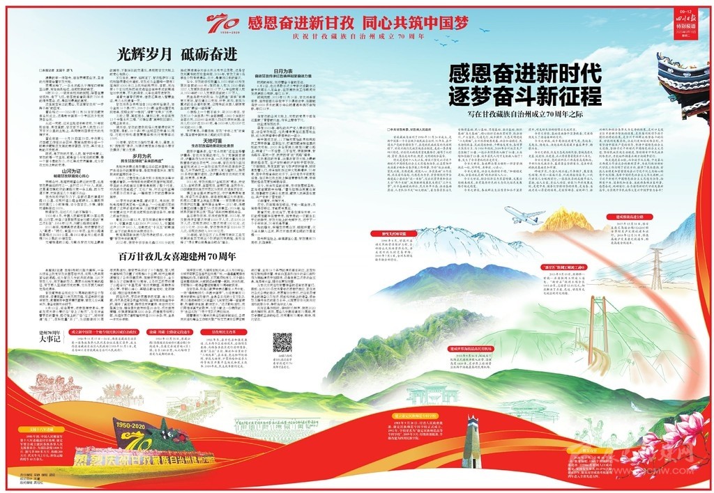 為慶祝甘孜建州70周年,《四川日報》于9月15日推出八連版特別報道,整體以紅色打底,充滿喜慶的祝福。