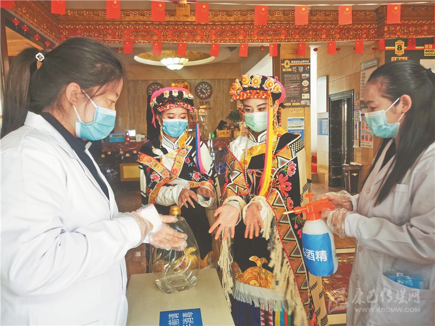 巴塘、九龍、得榮、理塘、甘孜、新龍、德格、白玉等各縣演出隊(duì)也十分重視防疫工作。每個(gè)演出隊(duì)均配齊了酒精、口罩、體溫槍等防疫用品,并在到達(dá)康定前,就對(duì)各自演出隊(duì)開(kāi)展了防疫宣傳、知識(shí)普及等工作。