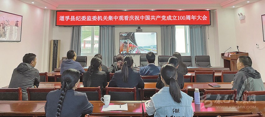 道孚縣紀委監(jiān)委干部職工集中觀看慶祝大會直播。 張德禧 攝