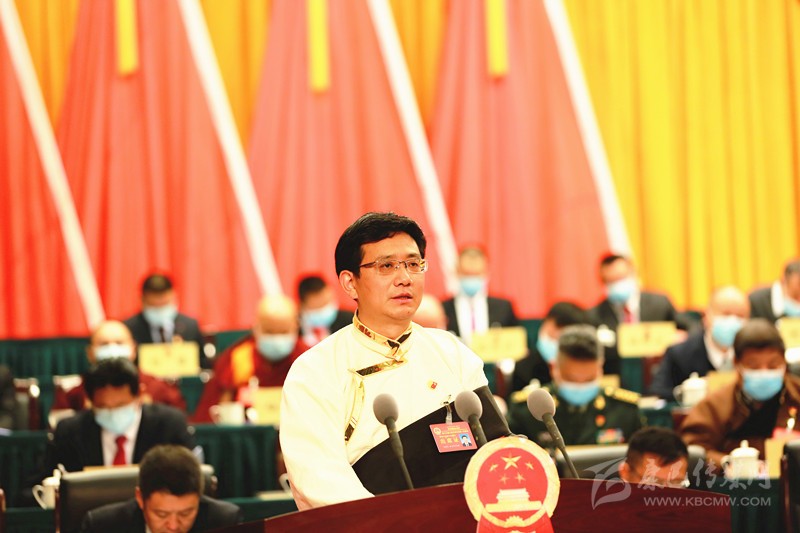 馮發(fā)貴代表州人民政府作工作報(bào)告。本網(wǎng)記者 張兵攝