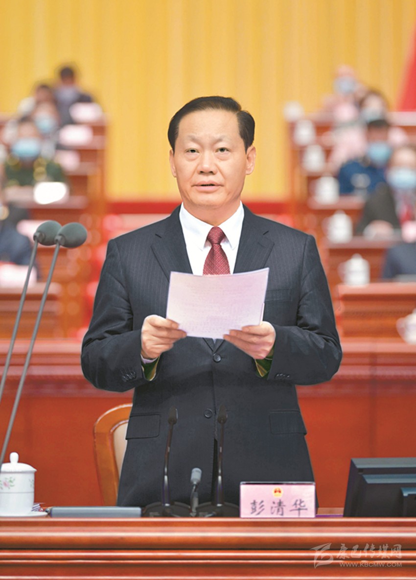 黃強(qiáng)代表省人民政府作工作報(bào)告。