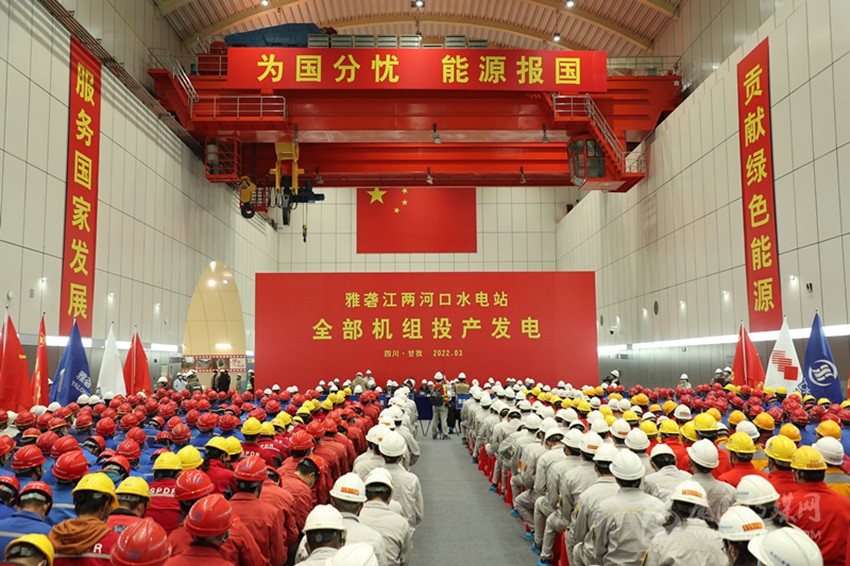 圖為兩河口電站全部機(jī)組投產(chǎn)發(fā)電儀式現(xiàn)場。