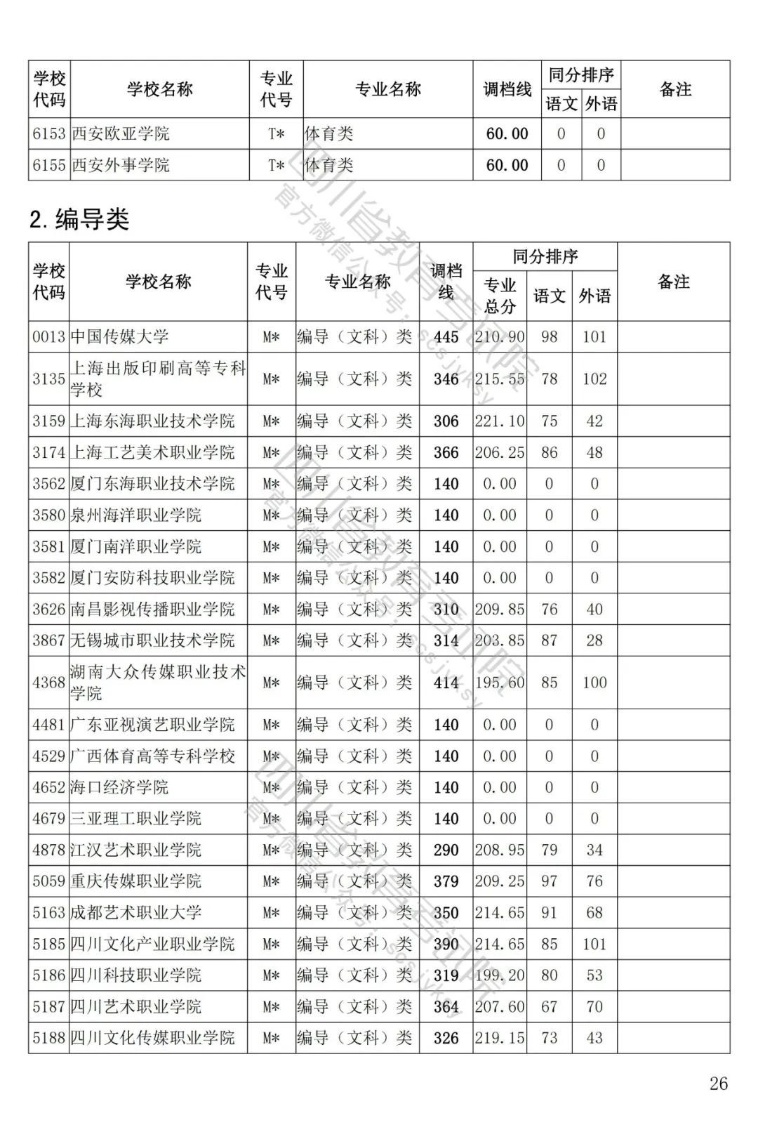 四川省2022年普通高等學(xué)校藝術(shù)體育類??婆延?月5日投檔錄取。為方便廣大考生和家長及時了解錄取信息,省教育考試院按非編導(dǎo)類和編導(dǎo)類發(fā)布了藝體類分校、分專業(yè)類調(diào)檔線。