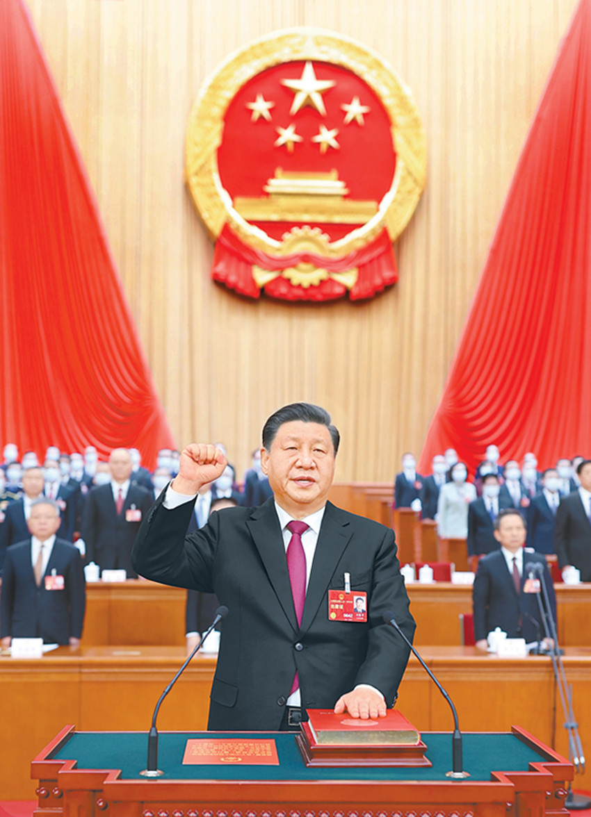 每一項表決、選舉結(jié)果宣布時,現(xiàn)場都響起熱烈掌聲。根據(jù)大會主席團關(guān)于憲法宣誓的組織辦法,全體會議各項議程進行完畢后,國務(wù)院總理李強、國家監(jiān)察委員會主任劉金國、最高人民法院院長張軍、最高人民檢察院檢察長應(yīng)勇,分別進行了憲法宣誓;中央軍委副主席、委員,全國人大常委會委員,分別進行了集體宣誓。