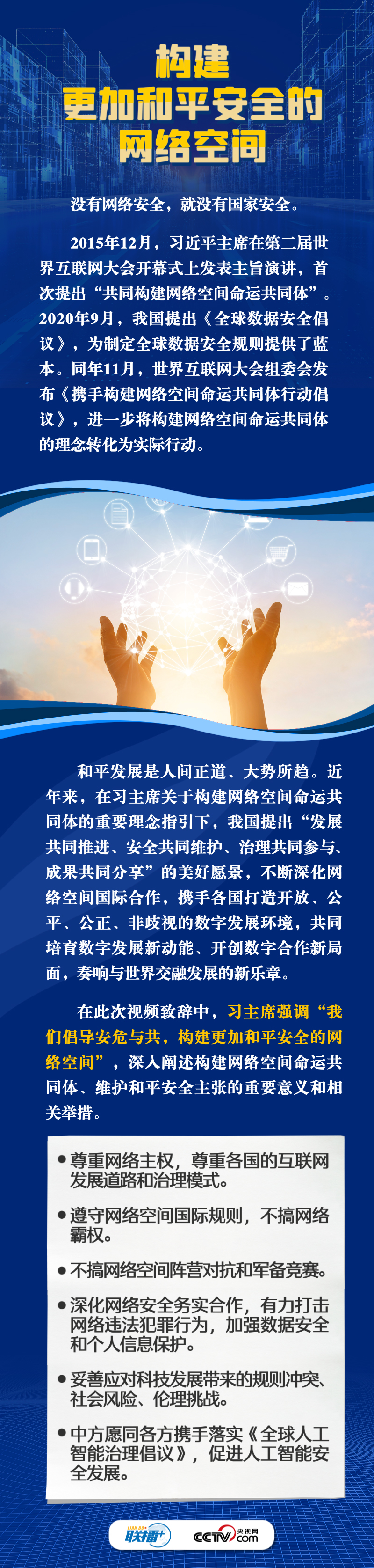 面對新的時(shí)代課題,習(xí)主席在此次視頻致辭中倡導(dǎo)構(gòu)建更加普惠繁榮、更加和平安全、更加平等包容的網(wǎng)絡(luò)空間。這三個(gè)“網(wǎng)絡(luò)空間”具體內(nèi)容是什么?構(gòu)建網(wǎng)絡(luò)“新空間”有什么具體措施?央視網(wǎng)《聯(lián)播+》與您一同學(xué)習(xí)。