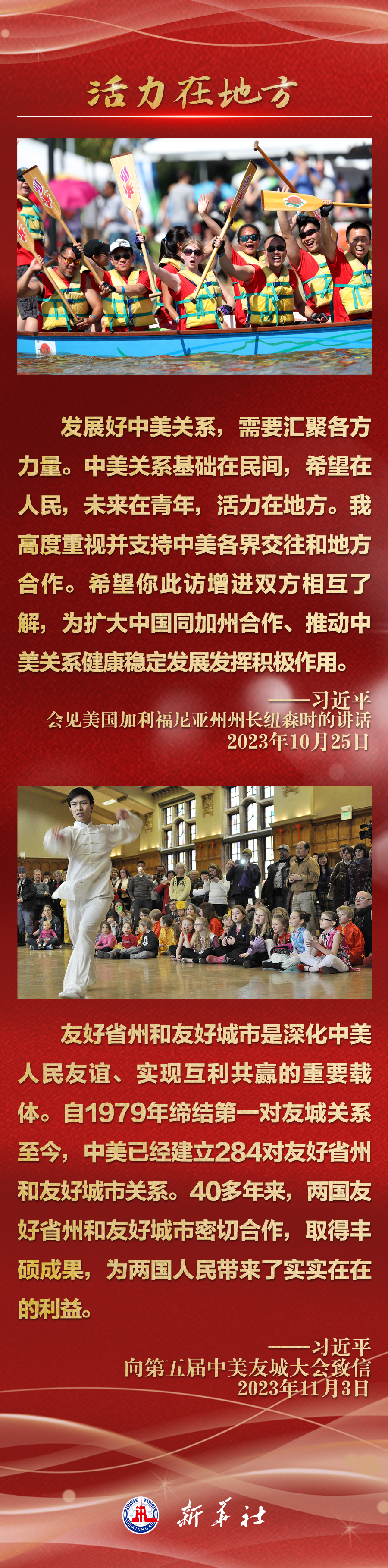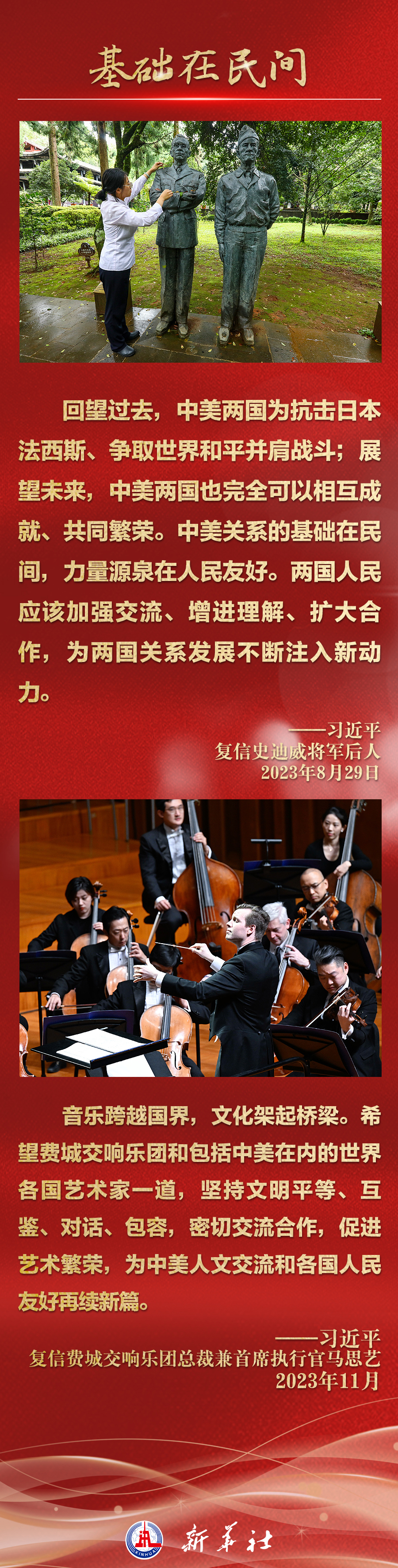 今年以來,從在京會見美國各界人士,到向“鼓嶺緣”中美民間友好論壇等活動致賀信,再到復(fù)信美國華盛頓州“美中青少年學(xué)生交流協(xié)會”、史迪威將軍后人、飛虎隊老兵等友好人士,習(xí)近平主席同美國各界真摯互動,強調(diào)中美關(guān)系基礎(chǔ)在民間,希望在人民,未來在青年,活力在地方。