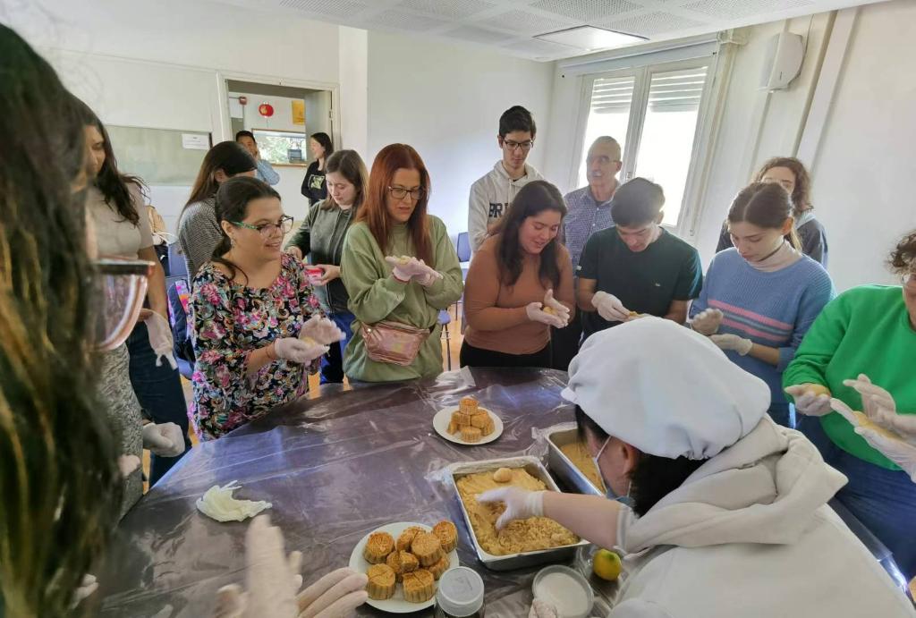 2023年9月29日,烏拉圭共和國(guó)大學(xué)孔子學(xué)院師生一起做月餅,歡度中秋節(jié)。