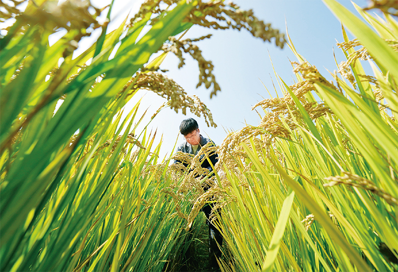 近年來,河北省唐山市通過鹽堿地土壤科學改良、耐堿作物品種培育、適用耕作技術研究應用等系列治理措施,在鹽堿地上開發(fā)建設了高標準農(nóng)田88.6萬畝,有效提高鹽堿地利用水平。圖為2023年10月11日,農(nóng)業(yè)科研人員在唐山市曹妃甸區(qū)第五農(nóng)場鹽堿地改良而成的高標準稻田內(nèi)工作。 新華社記者 楊世堯/攝