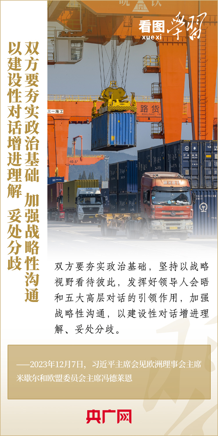 12月7日,國(guó)家主席習(xí)近平會(huì)見來華舉行第二十四次中國(guó)—?dú)W盟領(lǐng)導(dǎo)人會(huì)晤的歐洲理事會(huì)主席米歇爾和歐盟委員會(huì)主席馮德萊恩,雙方就事關(guān)中歐關(guān)系的戰(zhàn)略性問題,以及中歐各領(lǐng)域?qū)υ捄献?、雙方重點(diǎn)關(guān)切、全球治理、國(guó)際和地區(qū)熱點(diǎn)問題等深入坦誠(chéng)交換看法,并就一系列問題達(dá)成重要共識(shí)。今年是中歐建立全面戰(zhàn)略伙伴關(guān)系20周年,習(xí)主席強(qiáng)調(diào),中歐關(guān)系具有戰(zhàn)略意義和世界影響,關(guān)乎世界和平、穩(wěn)定、繁榮。一起來學(xué)習(xí)!