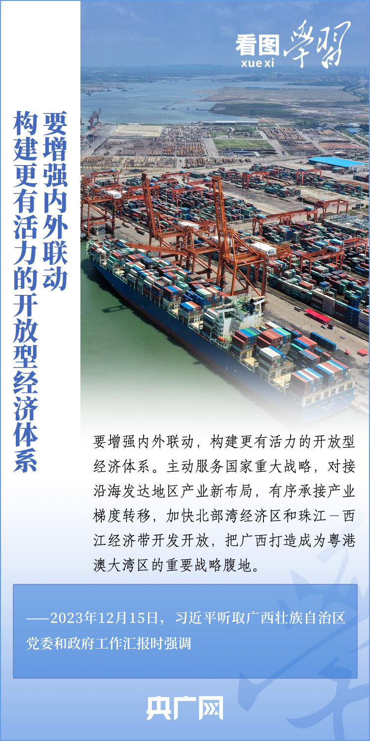 12月14日至15日,剛剛結(jié)束對越南進行國事訪問的習近平總書記在廣西考察并聽取廣西壯族自治區(qū)黨委和政府工作匯報??倳泴V西發(fā)展提出殷切希望,強調(diào)廣西要發(fā)揮自身優(yōu)勢,以鑄牢中華民族共同體意識為主線,解放思想、創(chuàng)新求變,向海圖強、開放發(fā)展,努力在推動邊疆民族地區(qū)高質(zhì)量發(fā)展上展現(xiàn)更大作為,奮力譜寫中國式現(xiàn)代化廣西篇章。一起來學習!