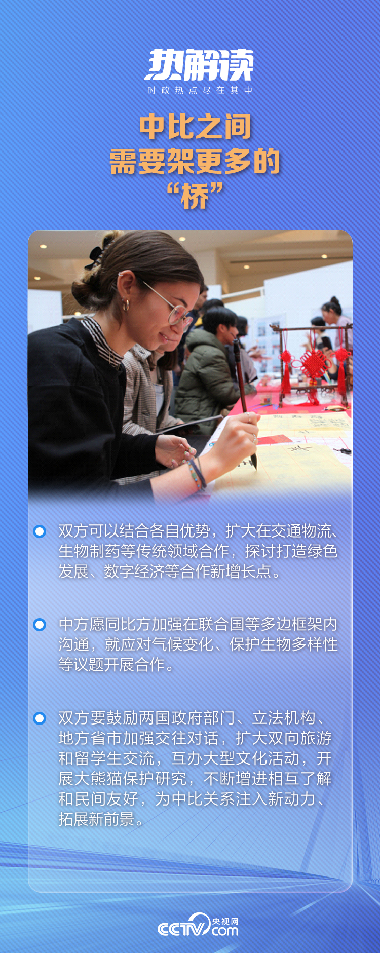 在雙方會談中,習主席回憶起十年前他訪問比利時布魯日時的一個細節(jié),并再次用“橋”作喻,期望中歐雙方更加緊密合作。德克羅熱情回應(yīng):“您提到10年前在布魯日歐洲學院發(fā)表的演講,我對您的演講至今都印象深刻。”