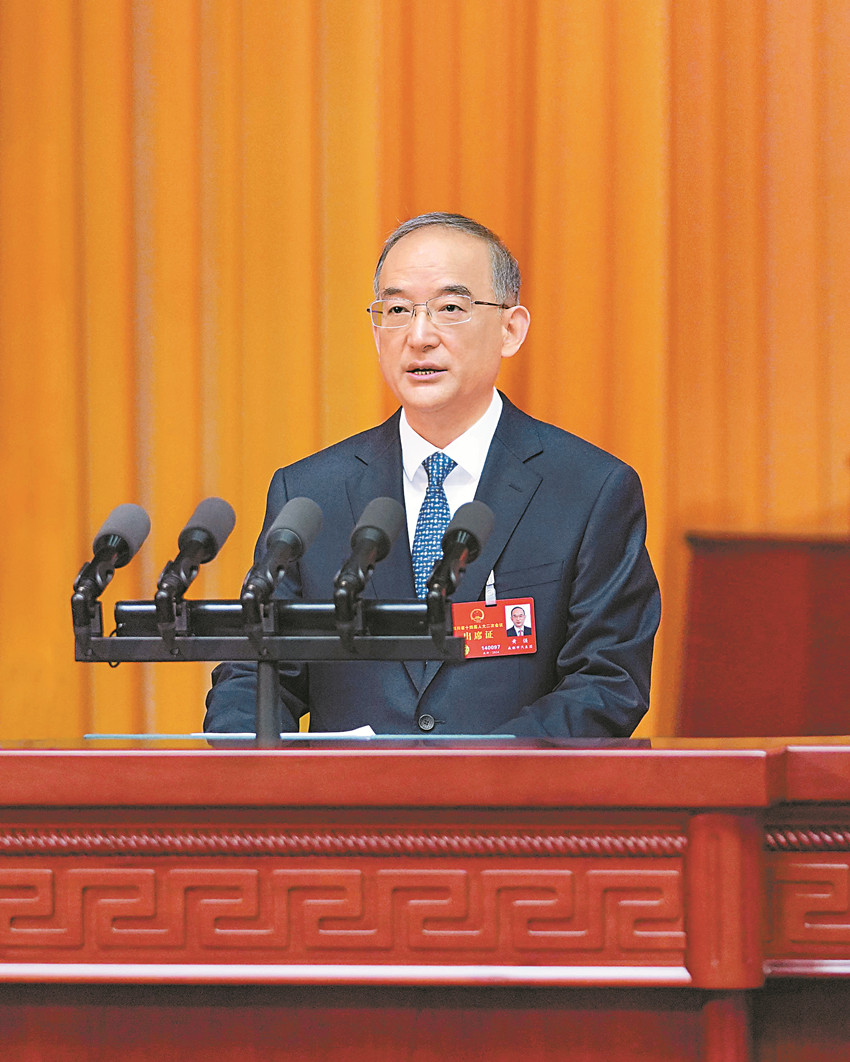 黃強(qiáng)代表省人民政府作工作報(bào)告。