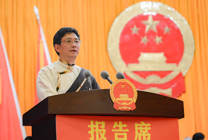 馮發(fā)貴代表州人民政府作政府工作報(bào)告。 賴強(qiáng) 甲央讓布 攝