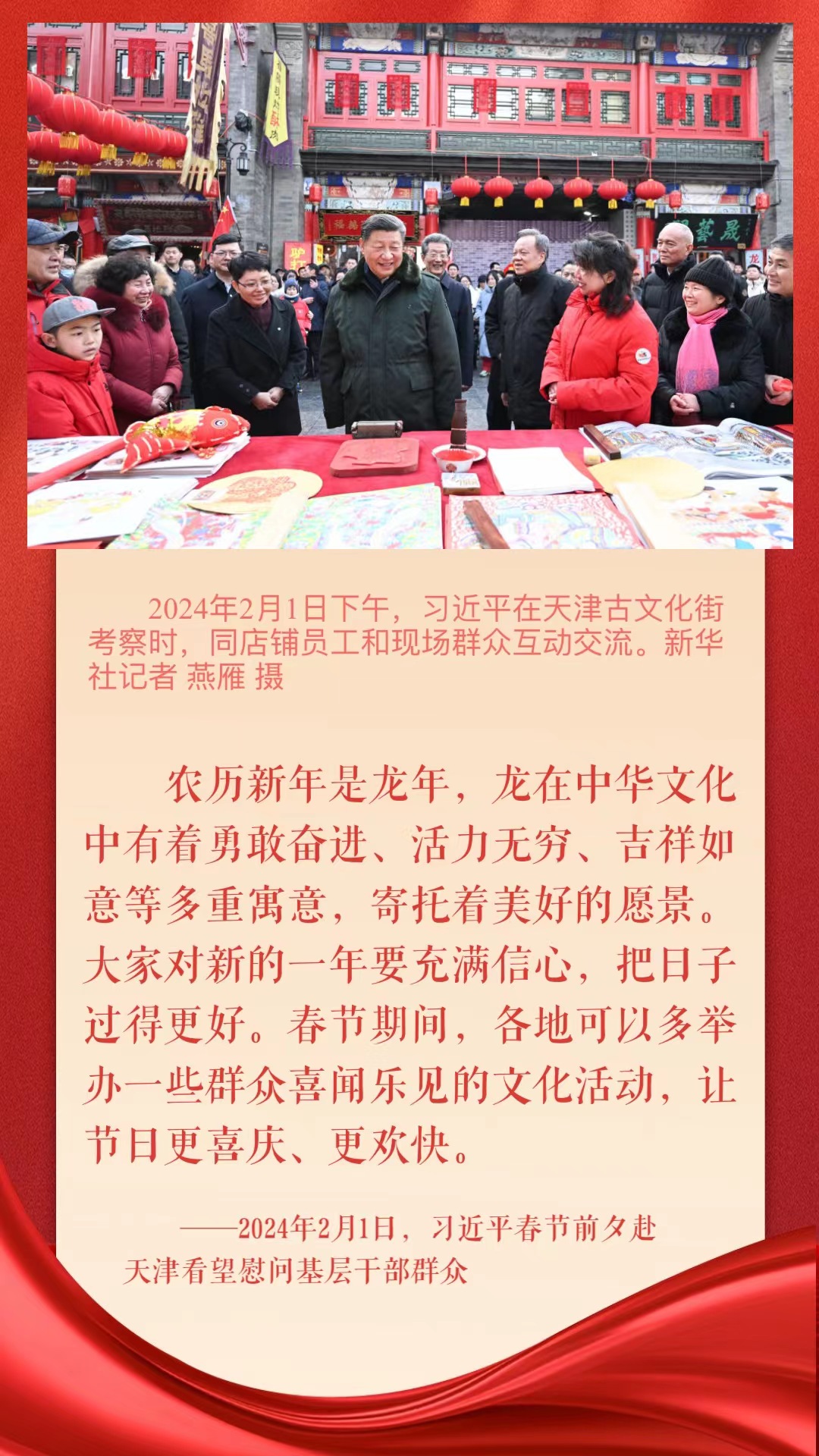 改善人居環(huán)境要保護(hù)歷史文化底蘊(yùn),發(fā)展經(jīng)濟(jì)、服務(wù)百姓的同時(shí),要注意弘揚(yáng)民族文化和傳統(tǒng)文化。黨的十八大以來,習(xí)近平總書記在地方考察調(diào)研時(shí)多次強(qiáng)調(diào),中國式現(xiàn)代化離不開優(yōu)秀傳統(tǒng)文化的繼承和弘揚(yáng),叮囑各地要讓歷史文化和現(xiàn)代生活融為一體,更好弘揚(yáng)中華優(yōu)秀傳統(tǒng)文化,更好服務(wù)經(jīng)濟(jì)社會(huì)發(fā)展和人民高品質(zhì)生活。在春節(jié)這個(gè)中華民族傳統(tǒng)節(jié)日,一起來重溫!